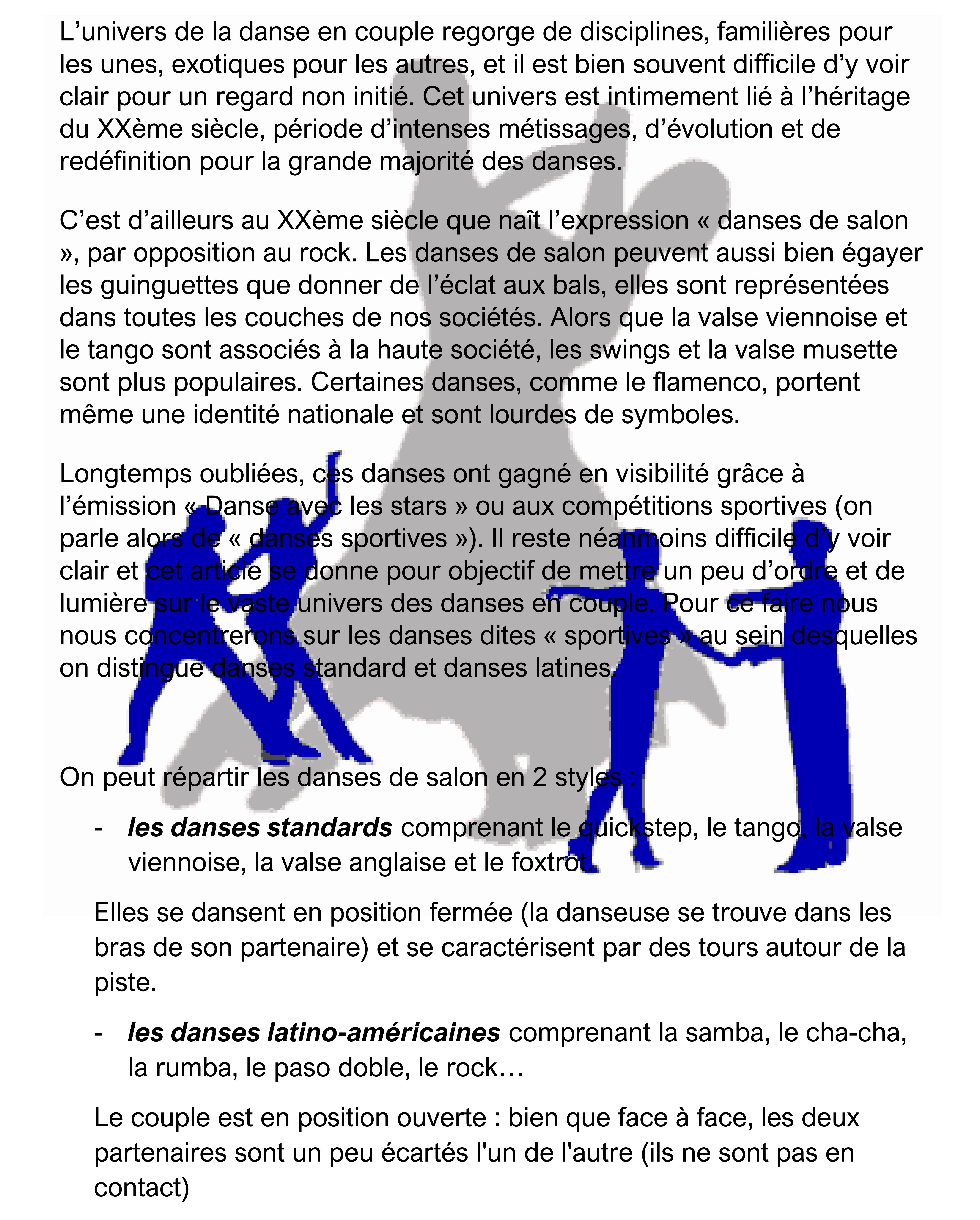 Vous aimez danser à deux, sur différents types de musique, de rythmes, d’énergies, le tout dans une ambiance conviviale, alors venez aux cours d’Ugo Lafrancesca au Gymnase de Romainville (Allée Salvadore Allende – Pessac), le mercredi